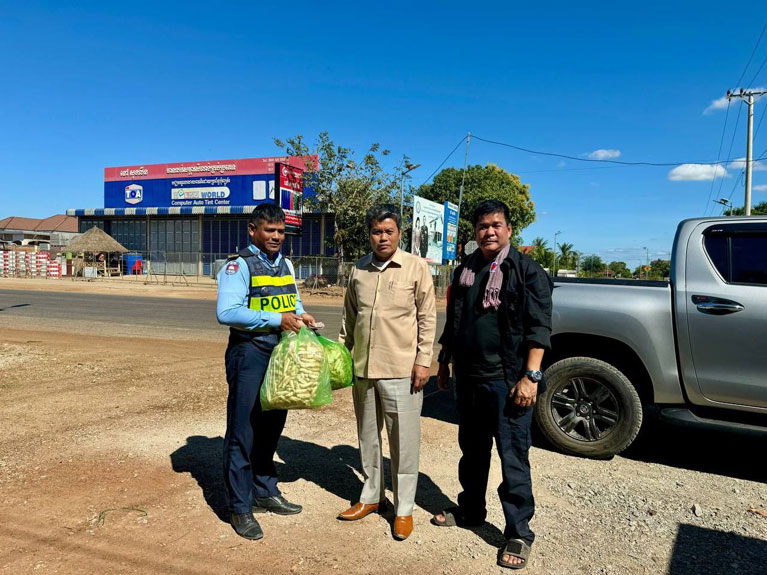ខេត្តឧត្តរមានជ័យ ៖ នៅរសៀលថ្ងៃទី១៥ ខែធ្នូ ឆ្នាំ២០២៥ ឯកឧត្តម អ៊ុំ ចាន់ថុល ប្រធានសាលាដំបូងខេត្តឧត្តរមានជ័យ បានចុះសួរសុខទុក្ខ កងកម្លាំង នគរបាល ដែលឈរជើងនៅជំរុំភៀសសឹក ស្រុកចុងកាល ខេត្តឧត្តរមានជ័យ ដោយបាននាំយកនូវនំចំណី និងថវិការមួយចំនួន ជូនដល់កងកម្លាំងនៅទីនោះផងដែរ ដែលបានបង្ហាញពីការចូលរួមលើកទឹកចិត្តដល់កងកម្លាំង ពីសម៌ភូមិក្រោយ ។
