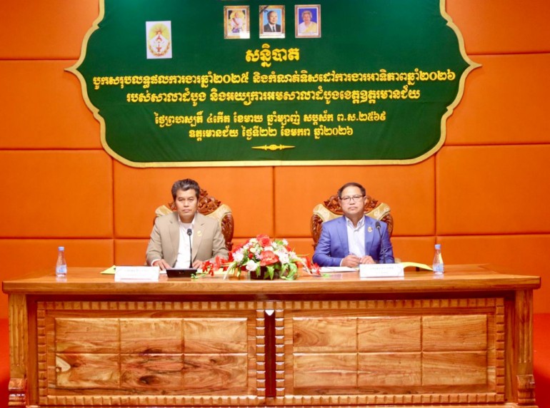 (ឧត្តរមានជ័យ)៖សាលាដំបូង និងអយ្យការអមសាលាដំបូងខេត្តឧត្តរមានជ័យ និងលេខាធិការដ្ឋានរដ្ឋបាលសាលាដំបូងខេត្តឧត្តរមានជ័យ នៅរសៀលថ្ងៃទី២២ ខែមករា ឆ្នាំ២០២៦ បានរៀបចំសន្និបាតបូកសរុបលទ្ធផលការងារប្រចាំឆ្នាំ២០២៥ និងលើកទិសដៅអនុវត្តការងារបន្តសម្រាប់ឆ្នាំ២០២៦។